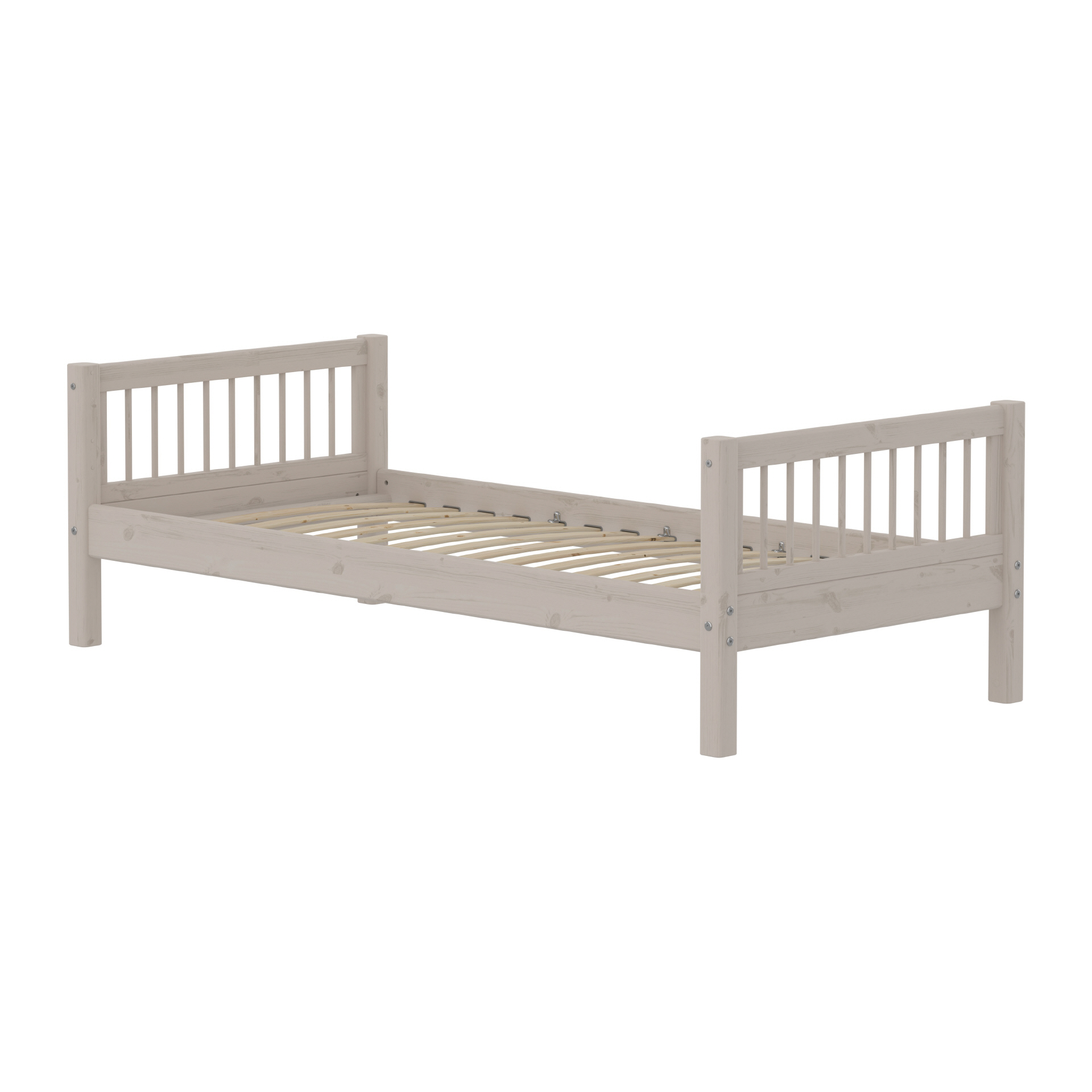 CLASSIC Bett mit integriertem, geformtem Lattenrost für optimalen Komfort. Ergänzen Sie das Bett mit einem Absturzsicherung. Es ist ideal für Kleinkinder, die gerade dem Babybett entwachsen sind. Das Bettdesign ist klassisch skandinavisch, in drei Farben erhältlich und hat ein Kopf- und Fußteil.