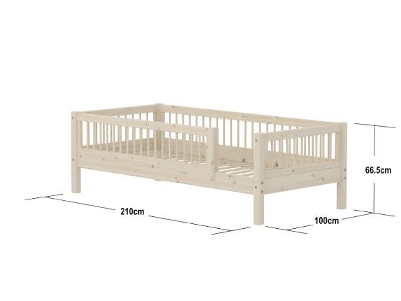CLASSIC Bett mit Rückenlehne, Kopf- und Fußteil und Absturzsicherung mit Streben. Es ist ideal für Kleinkinder, die gerade dem Babybett entwachsen sind. Das Bettdesign ist klassisch skandinavisch und in drei Farben erhältlich. Fügen Sie eine Unterbett-Schublade hinzu, die Platz für Kinderspielzeug und Bettwäsche bietet. Die CLASSIC Kollektion wächst mit dem Kind. Wenn Sie kurze Pfosten an das Einzelbett montieren, wird daraus ein mittelhohes Bett. Wenn Sie lange Pfosten an das Bett montieren, wird daraus ein Hochbett. Das Bett besteht aus massivem Kiefernholz.