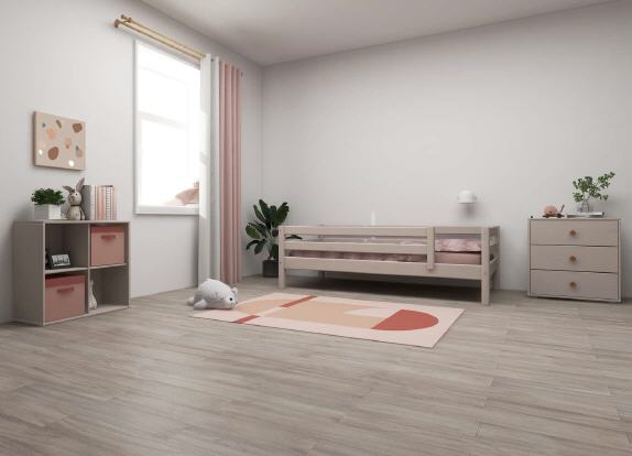 Einzelbett m. 3/4 Absturzsicherung - Grau lasiert