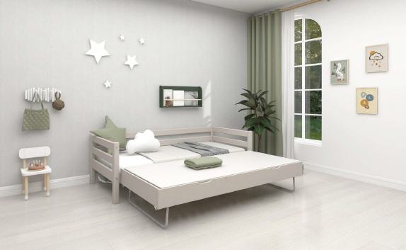 Einzelbett mit Ausziehbett Classic - Grau lasiert