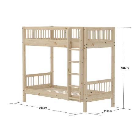 CLASSIC Etagenbett mit extra Höhe. Das Etagenbett ist mit einer geraden Leiter ausgestattet und eine ideale, platzsparende Lösung für kleinere Wohnungen. Die Leiter hat rutschfeste Stufen und kann an beiden Bettenden aufgestellt werden. Das Bett besteht aus massivem Kiefernholz. Altersempfehlung: Ab 6 Jahren. Ein Kind kann ab dem Alter von 3 Jahren im unteren Bett, das mit einem Absturzsicherung ausgestattet ist, schlafen.