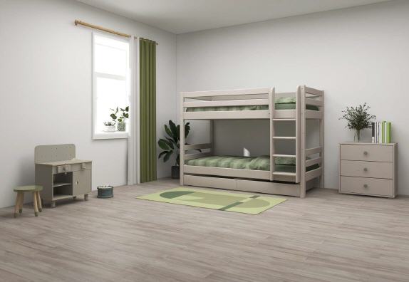 Etagenbett-Classic-Weiss. Gerade Leiter und 2 Unterbett Schubkästen.H:154 L:210 B:110 cm