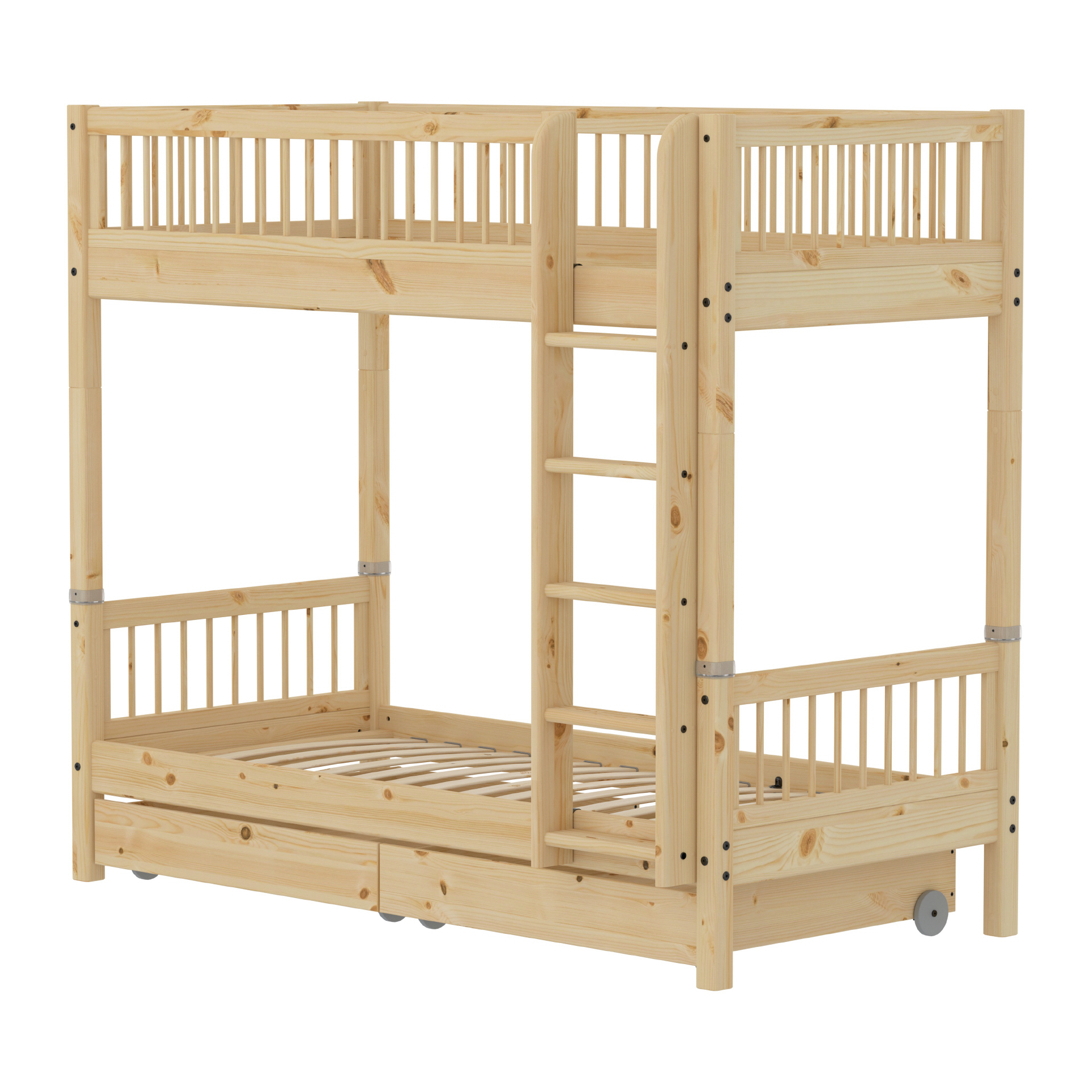 Die geräumigen Schubladen bieten mit jeweils 88,5 Litern Platz für Bettwäsche oder Spielzeug. Dank der praktischen Rollen lassen sich die Schubladen leicht unter dem Bett hervorziehen.