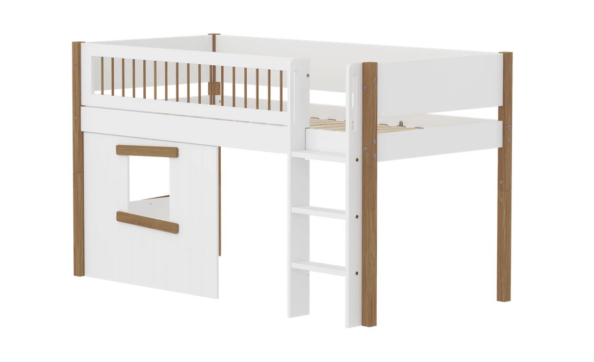 Mit Hausfronten bekommt Ihr Kind dieses magische Baumhaus-Feeling. Hier hat Ihr Kind sein ganz eigenes Zimmer im Zimmer, in dem es wertvolle Zeit allein genießen kann – wie in einem privaten Gartenbaumhaus. Und wenn es Zeit zum Spielen ist, kann Ihr Kind Freunde und Geschwister auf einen Besuch einladen. Stellen Sie sich nur vor, wie viel Spaß sie beim Haus-, Kaufladen- oder Versteckspiel haben werden. Mit einem mittelhohen Nor Bett mit Hausfronten sind die Möglichkeiten zum Spielen und Lernen unbegrenzt.