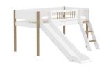 Halbhohes NOR Bett mit Schrägleiter und Rutsche. Das Bett, das ein Kinderzimmer in einen Spielplatz verwandelt!