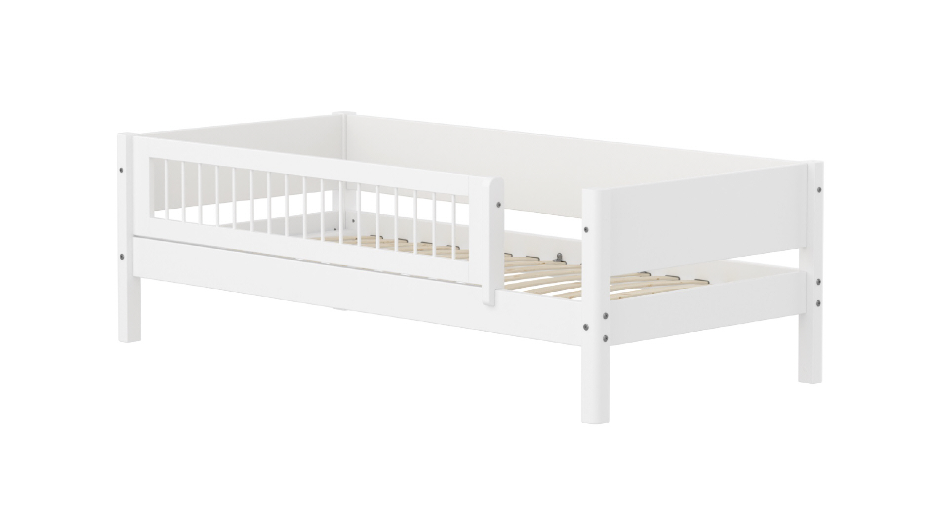Das WHITE Einzelbett mit Absturzsicherung bietet Kindern einen Ort, an dem sie sicher und geborgen sowohl im Traum als auch tagsüber Abenteuer erleben können.