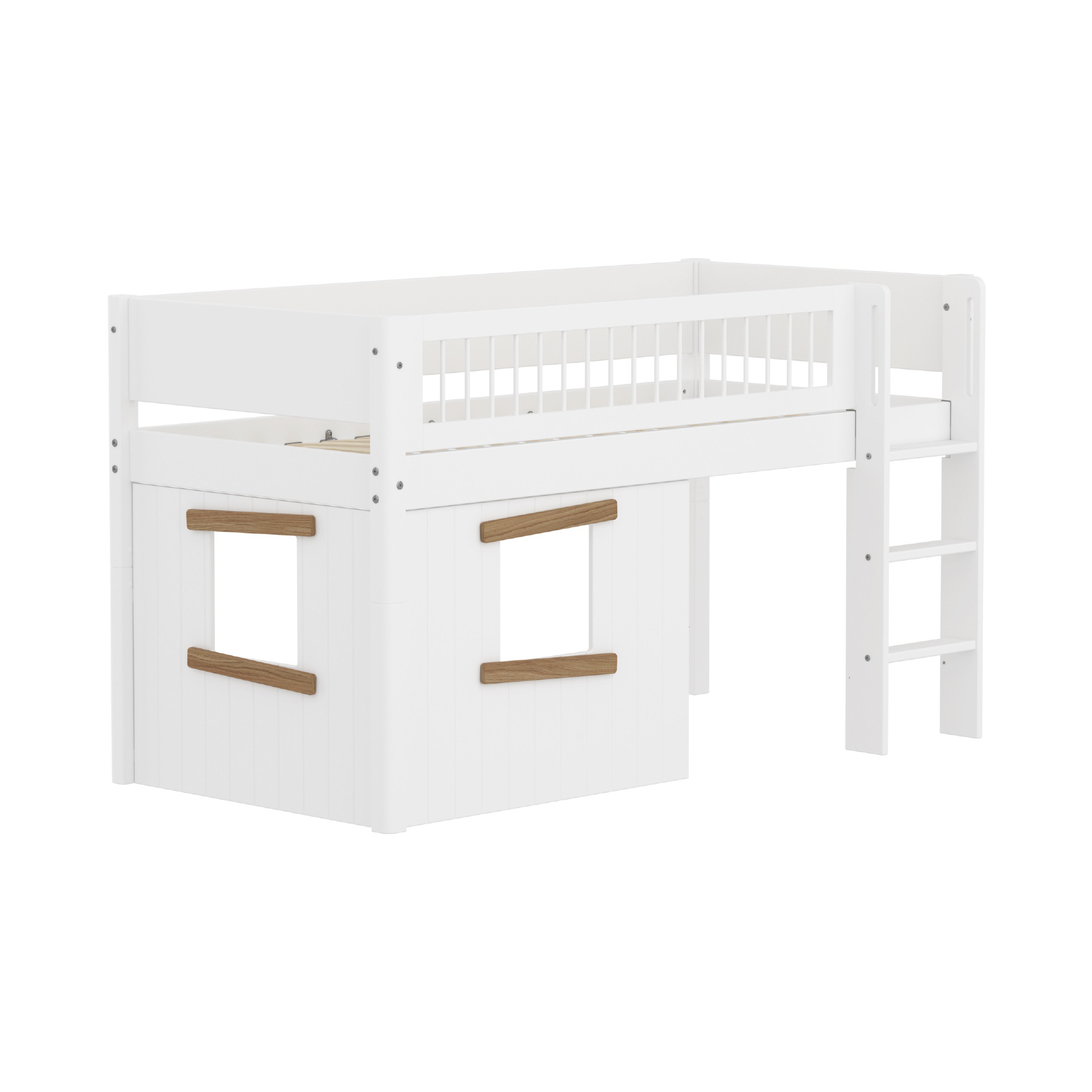 Mit Hausfronten bekommt Ihr Kind dieses magische Baumhaus-Feeling. Hier hat Ihr Kind sein ganz eigenes Zimmer im Zimmer, in dem es wertvolle Zeit allein genießen kann – wie in einem privaten Gartenbaumhaus. Und wenn es Zeit zum Spielen ist, kann Ihr Kind Freunde und Geschwister auf einen Besuch einladen. Stellen Sie sich nur vor, wie viel Spaß sie beim Haus-, Kaufladen- oder Versteckspiel haben werden. Mit einem mittelhohen White Bett mit Hausfronten sind die Möglichkeiten zum Spielen und Lernen unbegrenzt.