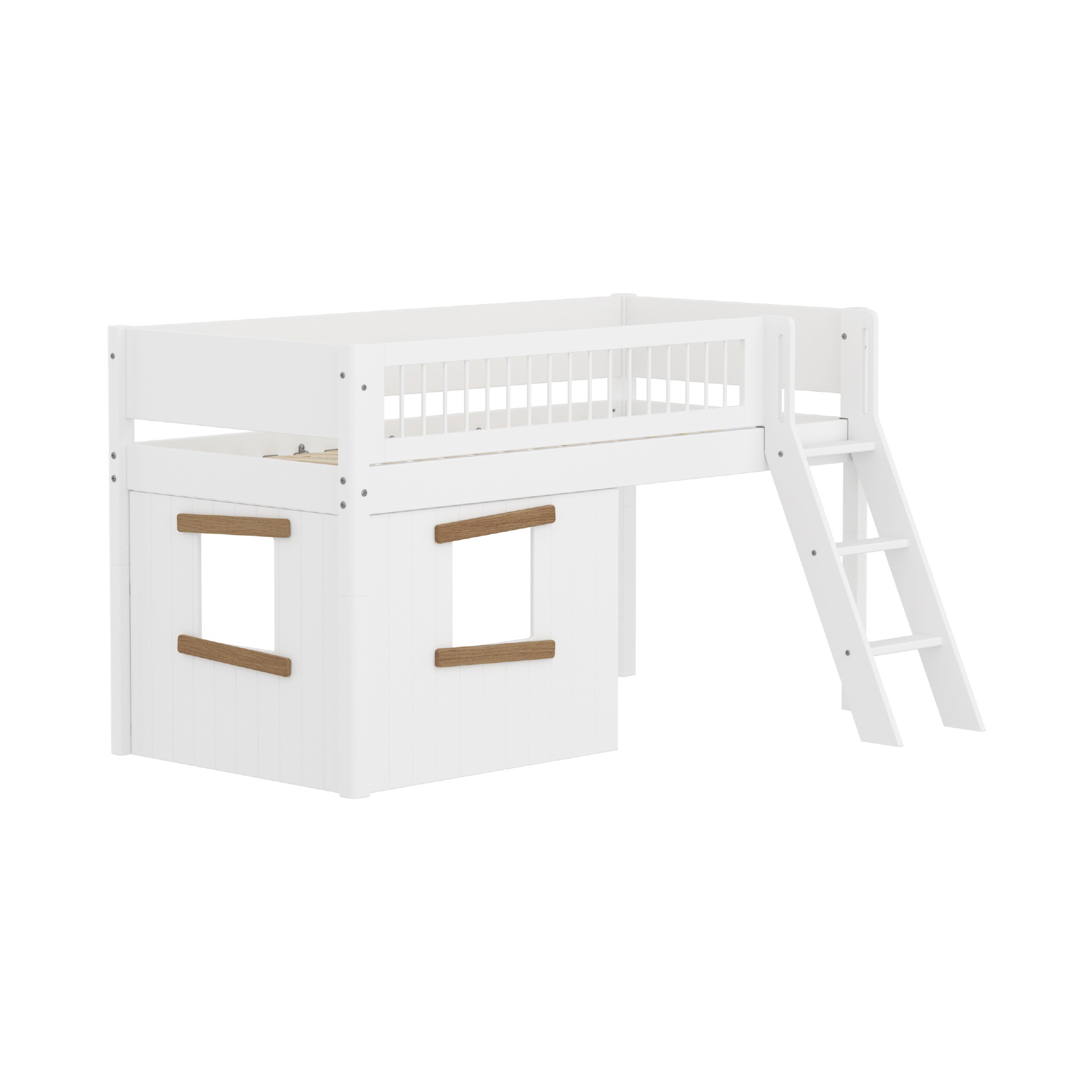 Halbhohes Hausbett mit Sprossen-Schrägleiter