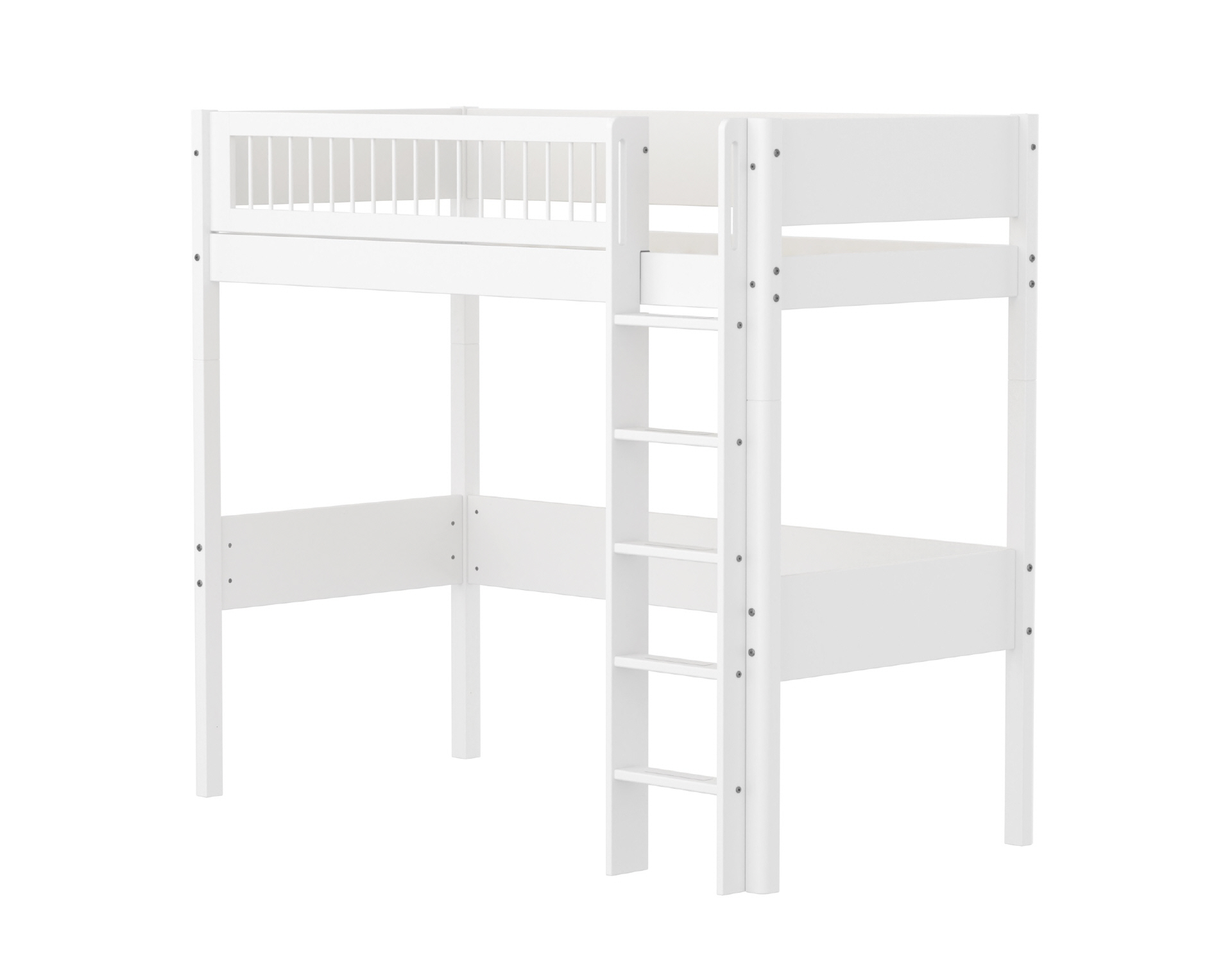 WHITE Hochbett ist ideal, wenn das Kind unter dem Bett einen Raum oder Aufbewahrungsfläche benötigt. Unter dem Bett kann man es sich so richtig gemütlich machen. Das Hochbett ist modular aufgebaut und kann durch Auswechseln der Pfosten und der Leiter in ein Einzelbett oder ein mittelhohes Bett umgewandelt werden. Das Bett hat eine gerade Leiter mit rutschfesten Stufen und integrierten Griffen. Die Leiter kann an beiden Bettenden aufgestellt werden.