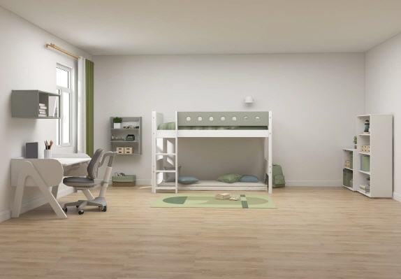 Mittelh. Bett-White+senkr.Leit.-Weiss-Naturgrün